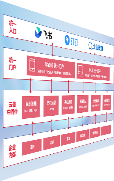 对协作平台提供支持服务,,,,支持企业应用与协作平台对接,,,包含组织同步、、、消息集成、、、待办集成等。。。支持目前主流的协作平台:钉钉、、企微和飞书。。。。